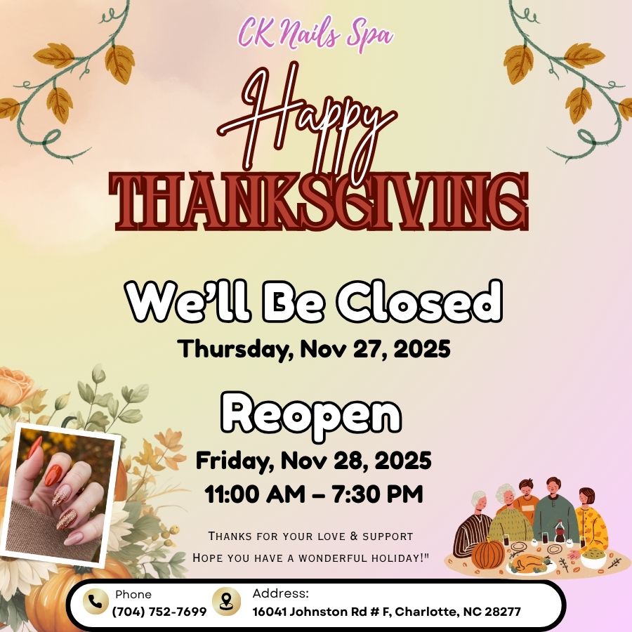 Visit CK Nails Spa and get the services you expect! Located conveniently in Charlotte, North Carolina 28277, CK Nails Spa is proud of being one of the best nail salons with many high-quality products.